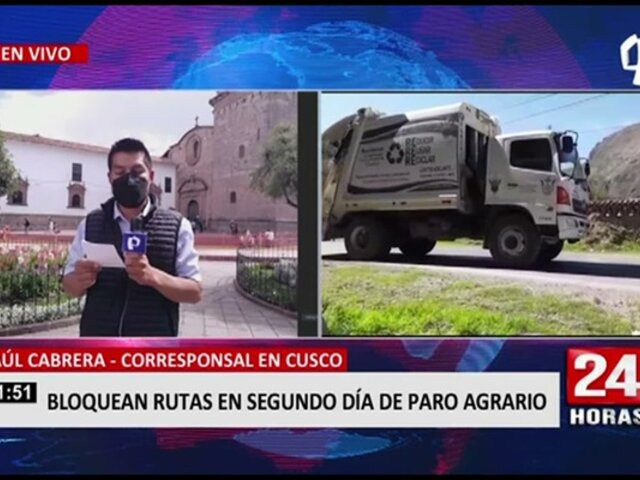 En el Cusco, los pobladores vienen acatando el segundo día de un paro de 48 horas. Este paro se debe al alza de precios de los fertilizantes y otros insumos. Este paro agrario hizo que decenas de personas, bloquearan la ruta vehicular de Urubamba a Ollantaytambo, además de impedir el libre del tránsito de los trenes de la línea Perú Rail e Inca Rail, con destino a la ciudadela de Machu Picchu.