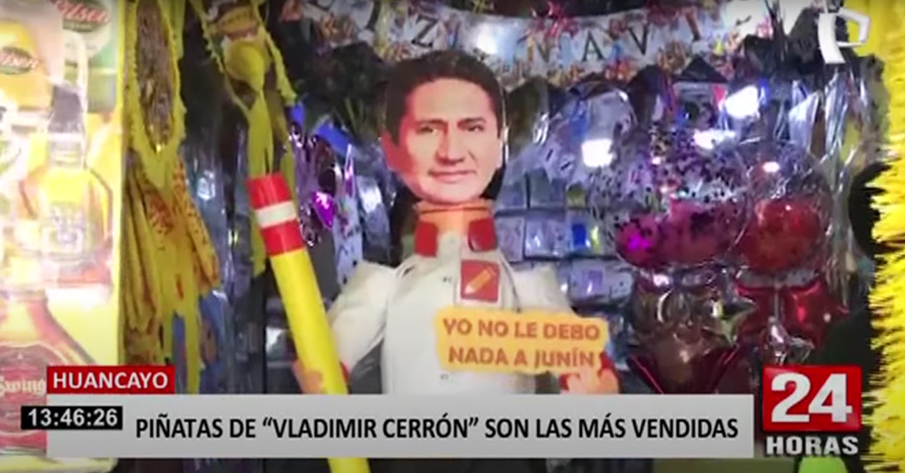 Entre ellos destaca el exgobernador regional de Junín, Vladimir Cerrón, cuya imagen invadió las piñaterías del distrito de El Tambo y según los comerciantes, se vende como “pan caliente”.