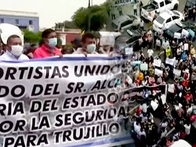 Un grupo de ciudadanos acompañados por el alcalde provincial de Trujillo, José Ruiz Vega, salieron a las calles para exigir al Gobierno que se declare el estado de emergencia en la ciudad. La población busca combatir la delincuencia creciente, además, el sicariato también se ha incrementado, según recientes cifras, hay 42 muertos por crímenes en Trujillo.