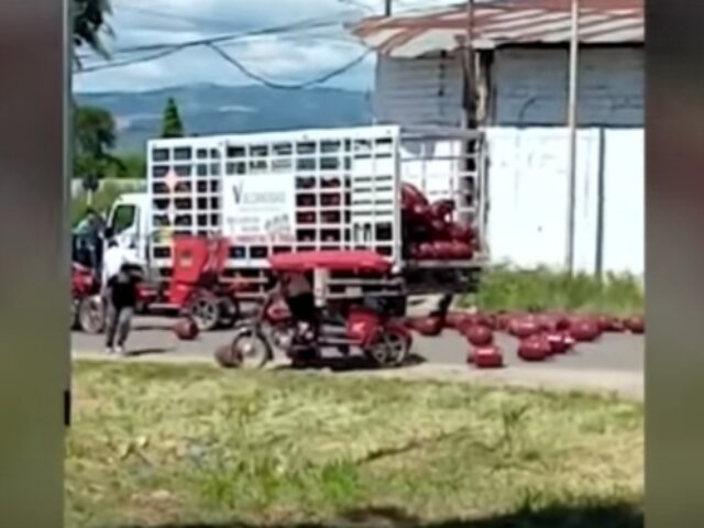 Manifestantes en Pucallpa aprovecharon la coyuntura para saquear un camión lleno de mercadería. Además de registró el bloqueo de las vías principales de la región con quema de llantas.