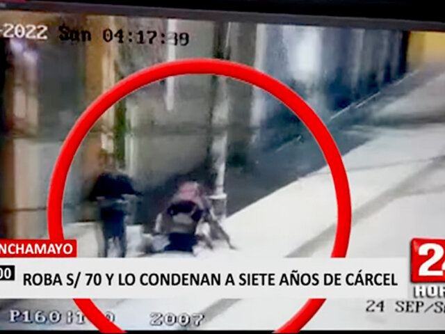 Desproporcionado. Un hombre fue captado por una cámara de seguridad cuando robaba 70 soles de un hombre. La autoridad judicial ordenó siete años de prisión, por lo que dictaminó que sea enviado inmediatamente al penal Virgen de las Mercedes. Además, también tendrá que pagar reparación civil por un monto de nada menos que S/.200.