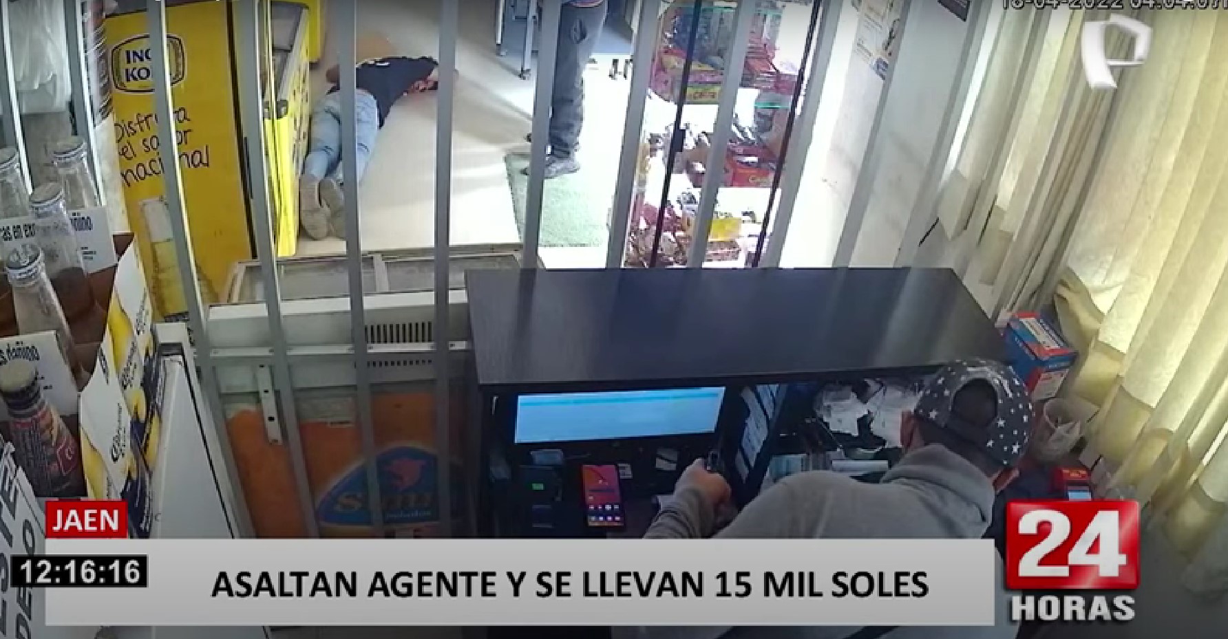 Un nuevo hecho delincuencial se registró en Jaén. Las cámaras de seguridad de grabaron el preciso momento cuando dos hampones armados ingresan de forma violenta a un agente bancario amenazando a los trabajadores y clientes y llevándose la suma de 15 mil soles en menos de un minuto.