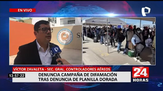 Un equipo de Panamericana Televisión fue hasta la sede del Sindicato Unificado de Controladores Aéreos del Perú (SUCTA). El secretario general de este gremio, Víctor Zavaleta, habló acerca de la denuncia que esta haciendo este grupo por campaña de difamación que se vienen haciendo en su contra a raíz de la última información que se publicó el día domingo a través de un medio de comunicación.