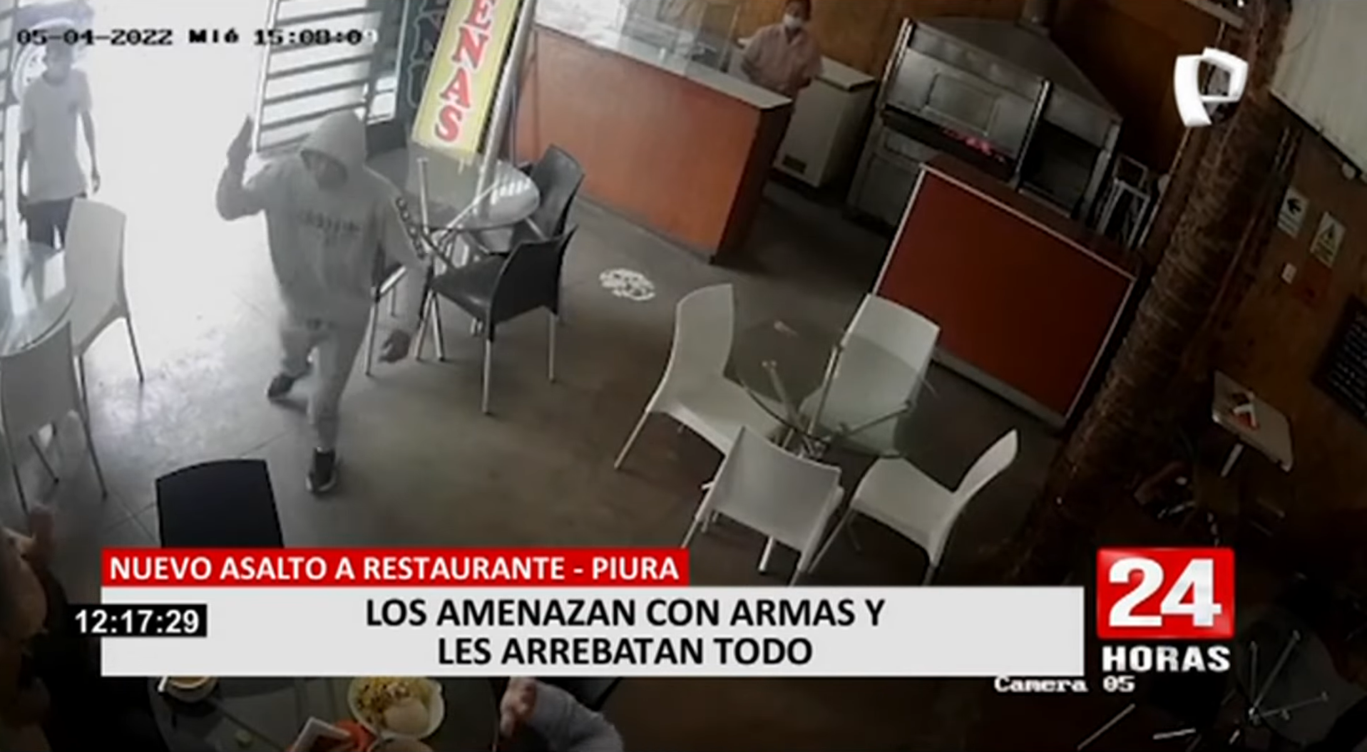 Las cámaras de seguridad de un restaurante en Piura captaron el momento preciso, en el que con gran rapidez, dos hampones encapuchados habrían ingresado armados al lugar.