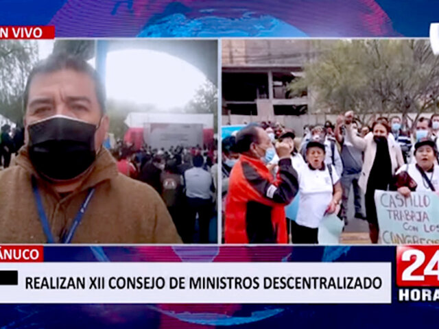 Esta mañana se realiza el XII Consejo de Ministros Descentralizado en Huánuco, en la universidad Nacional Hermilio Valdizán. Algunos grupos de manifestantes se han apostado en los exteriores del lugar exigiendo, por un lado, el cierre del Congreso, y por el otro, la salida del presidente Castillo.