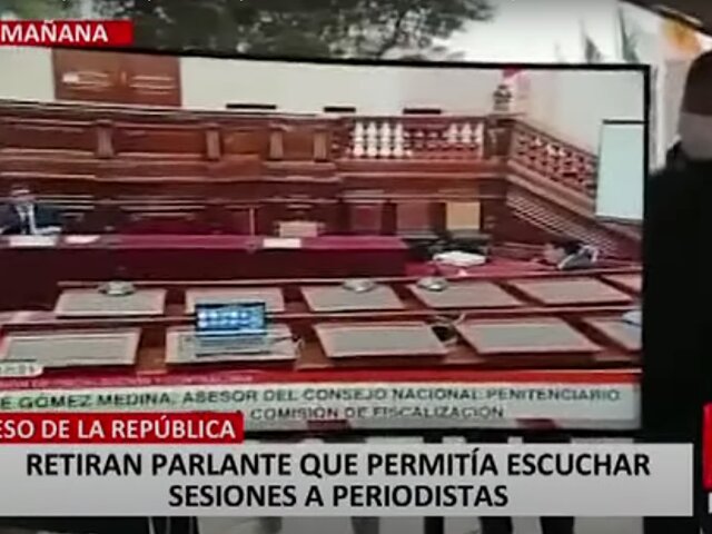 Trabajadores del Congreso de la República retiraron el único parlante con el que los periodistas podían escuchar las sesiones de las comisiones que se desarrollan en el Legislativo.