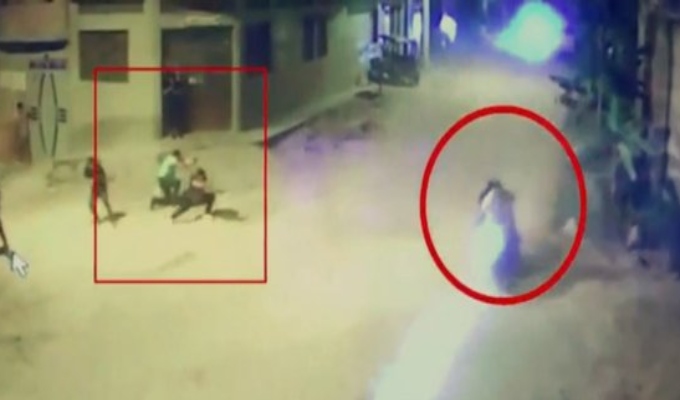 En medio del fuego cruzado, uno de los vándalos finge que resultó herido y cae al suelo, pero al ver que sus adversarios, que huían a bordo de una motocicleta se despistan, inmediatamente se levanta y realiza unos disparos más.