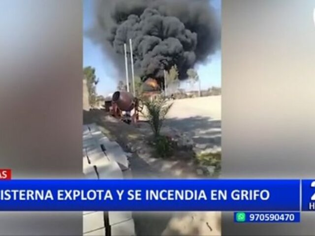 Un camión cisterna explotó mientras se abastecía de combustible en un grifo ubicado en la región de Paracas. A causa del incidente, dicho establecimiento terminó incendiado, provocando que otros vehículos sean consumidos por las llamas.