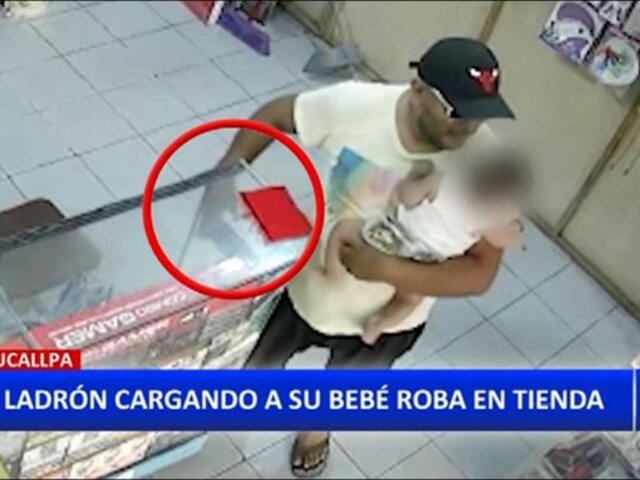 Un delincuente que tenía a su bebé cargando en brazos, aprovechó un descuido para asaltar en una tienda de celulares en la región de Pucallpa. El ladrón utilizó a la criatura para no levantar sospechas de sus intenciones en el establecimiento.
