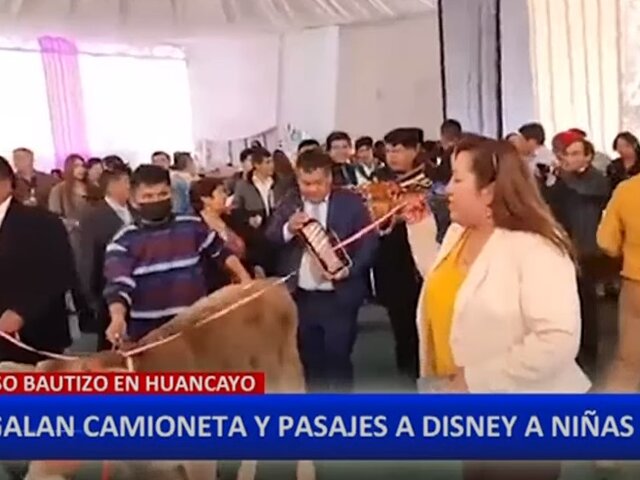 Lujoso bautizo en Huancayo: Regalan camioneta, pasajes a Disney y joyas