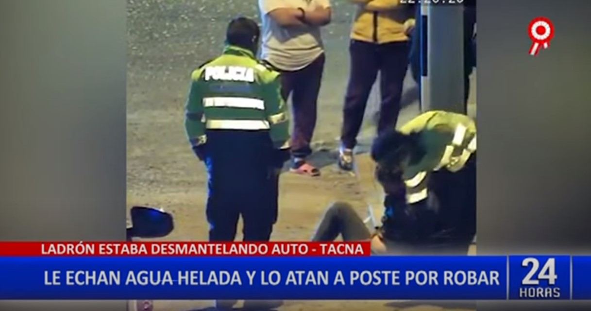 Los vecinos lo encontraron infraganti, cundo un malhechor intentó desmantelar un auto de un ciudadano, el cual lo capturó y lo ato aun poste para darle su merecido por su accionar. El hecho ocurrió en el distrito de Alto Alazana, en Tacna.