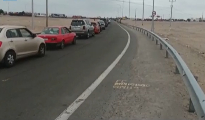 Este martes, se registró larga filas de vehículos que desde el país vecino Chile por el Complejo Fronterizo Santa Rosa intentan ingresar al país.
