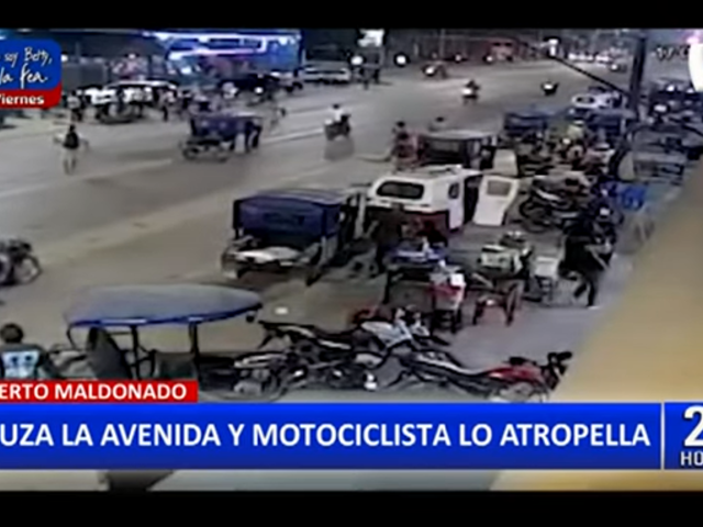 Cámaras de seguridad de la ciudad de Puerto Maldonado en la región Madre de Dios, habrían captado el preciso momento en el que un sujeto es atropellado violentamente por una motocicleta que transitaba por una concurrida avenida del lugar.