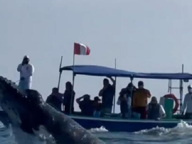 En Tumbes, decenas de personas que llegaron al balneario de Canos de Punta Sal, quedaron asombradas con el avistamiento de ballenas.