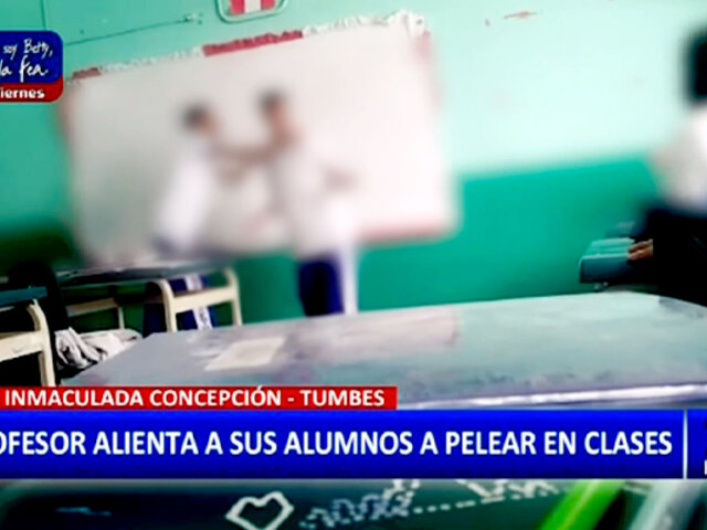 Mala enseñanza. Un docente de comunicaciones del segundo año de secundaria de la Institución Educativa Inmaculada Concepción, en Tumbes, fue grabado por sus propios alumnos cuando promovía una pelea dentro del aula y en pleno horario de clases.