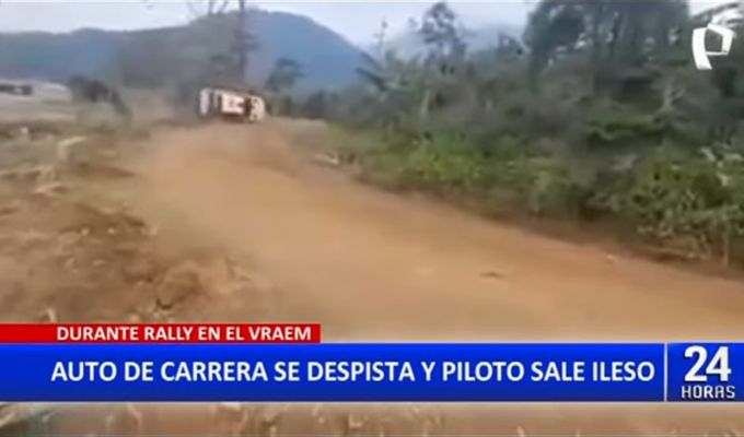 Un nuevo accidente automovilístico se registró en el Vraem, luego que un auto de carreras se despistara y terminara dando vueltas de campana durante el desarrollo de un Rally en dicha región, causando pánico entre los espectadores.