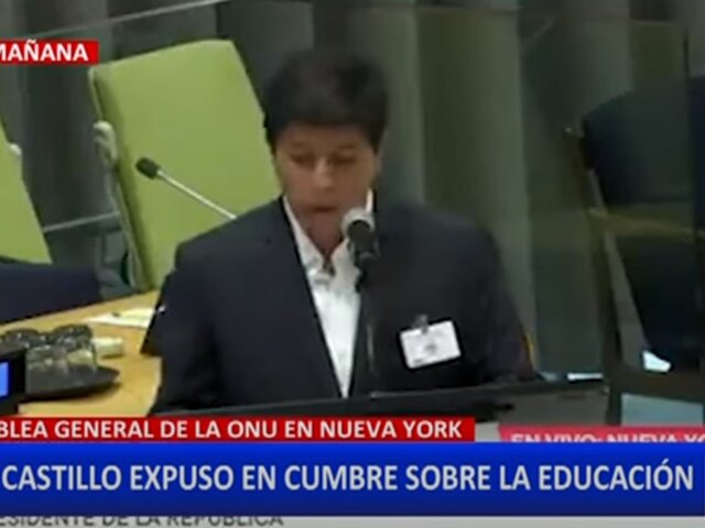El presidente de la República, Pedro Castillo, expuso este lunes en la Cumbre sobre la Transformación de la Educación, en Nueva York, Estados Unidos, donde se encuentra para participar en el 77º período de sesiones de la Asamblea General de la Organización de las Naciones Unidas.