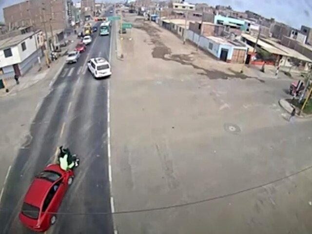 Las cámaras de seguridad de la Municipalidad de Víctor Larco, en Trujillo, captaron el preciso momento en que un autor de color rojo que circulaba a gran velocidad por una de las avenidas de la ciudad, atropelló a un agente del Serenazgo que patrullaba la zona en una moto lineal.