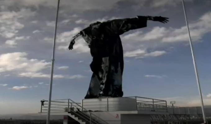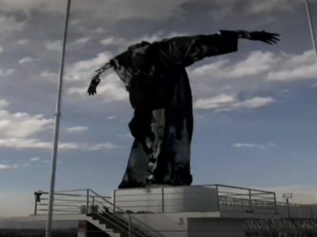 En las imágenes difundidas por las redes sociales, se puede ver como la estructura de más de 10 metros y que había sido inaugurada hace menos de un mes, era consumida por el fuego que se propagó desde la base superior hasta la cabeza y los brazo de la imagen religiosa.