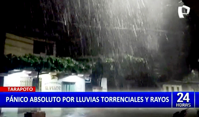 Desde la noche inició las lluvias torrenciales en Tarapoto. Las fuertes precipitaciones generaron que la celebración por el aniversario del Distrito de Morales sea suspendida, luego que los toldos se vinieran abajo por el peso del agua y las fuertes ráfagas de viento.