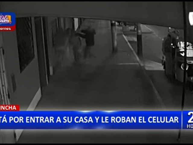Según las imágenes captadas por las cámaras de seguridad de una vivienda aledaña, se puede observar como los dos delincuentes llegan a bordo de una mototaxi quienes rápidamente bajan del vehículo y golpean al sujeto que intentaba entrar a su vivienda.