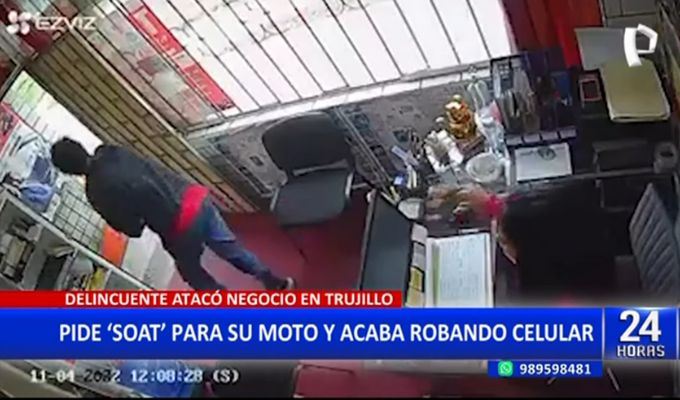 En la ciudad de Trujillo, la dueña de un negocio dedicado a la venta de seguros para vehículos se convirtió en víctima de la inseguridad ciudadana, luego que un falso cliente ingresó al establecimiento para robarle su teléfono celular.