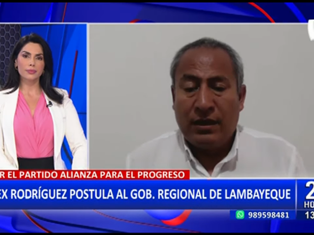 En entrevista exclusiva con 24 Horas Edición Mediodía, el candidato al Gobierno Regional de Lambayeque, por el partido Alianza para el Progreso, Alex Rodríguez, brindó detalles acerca de las propuestas que tendría como aspirante para este puesto del sector público.