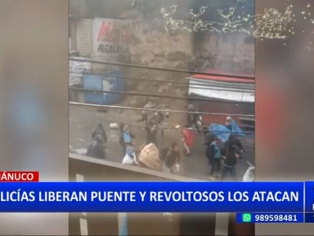 Los efectivos policiales procedieron a desbloquear dicho puente, sin embargo, el grupo de manifestantes al ver que intentaban liberar dicho camino procedieron a atacarlos lanzándoles palos y pierdas, a fin de evitar que logran su cometido.