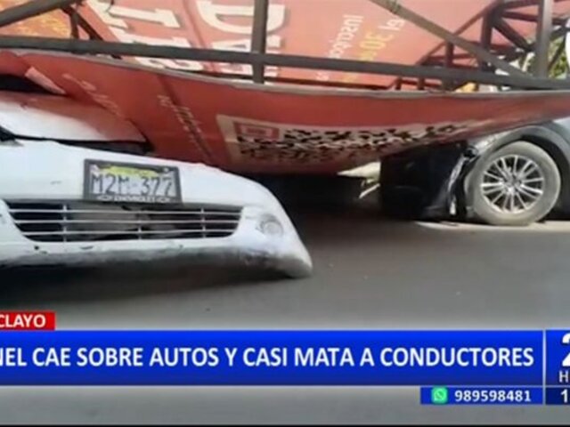 Chiclayo: Panel cae sobre autos y conductores se salvan de milagro