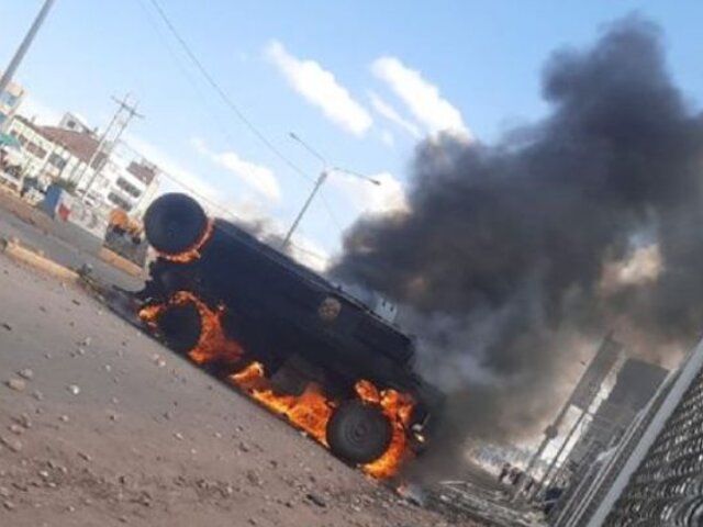 Puno: Enfrentamiento con manifestantes deja 2 policías heridos y un vehículo de la PNP incendiado