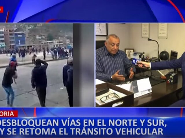 “Se ha liberado Chau y Virú a las 6 de la mañana, también la vía de Humay ayer por la noche, en la ciudad del Cusco. Otra de las vías liberadas es en la Joya en la región Arequipa, el cual estaba bloqueado el accedo al sur del país. Esto genera cierta tranquilidad en el empresariado y sobre todo en el usuario, quien tiene que recuperar la confianza para volver a viajar”, expresó.