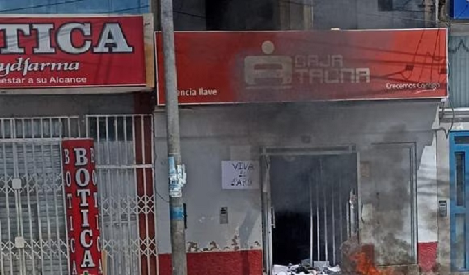 El representante de la Federación de Cajas Municipales, Jorge Solis denunció actos violentos. Según Jorge Solís, en los dos últimos días los protestantes incendiaron 5 sedes de las cajas municipales.