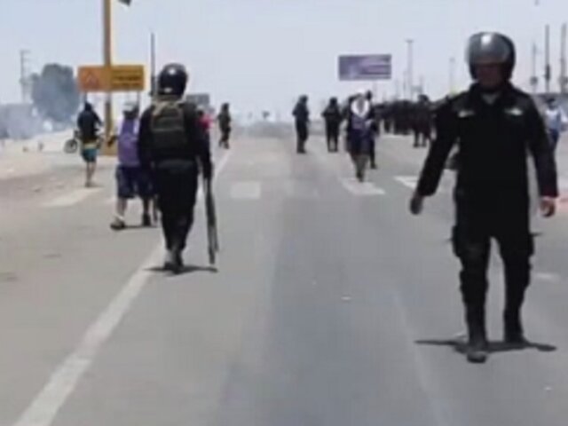 La Policía Nacional del Perú (PNP) comenzaron los trabajos para despejar la vía Panamericana Sur, este martes 24 de enero. Hasta el momento han podido desbloquear la altura del centro poblado La Expansión, en el distrito iqueño de Guadalupe por completo. Sin embargo, los manifestantes volvieron a tomar control de la zona, luego de los enfrentamientos entre civiles y fuerzas del orden.