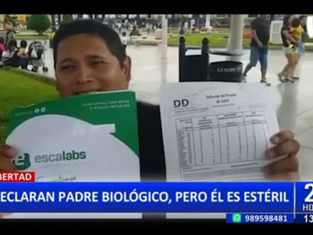 Polémica en el departamento de La Libertad. Un ciudadano identificado como Lenin Jáuregui Novoa, quien afirma ser clínicamente estéril, denuncia que una jueza lo ha declarado padre biológico de un menor de edad, pese a su condición.