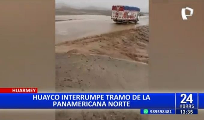 En la ciudad de Huarmey, un huayco producto de las fuertes precipitaciones en la zona ha bloqueado un tramo de la carretera Panamericana Norte, interrumpiendo el libre tránsito de los conductores que transitan por dicho lugar.