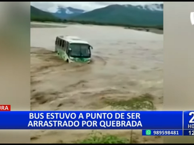 Piura: Bus interprovincial es arrastrado por lluvias y estuvo a punto de caer en quebrada