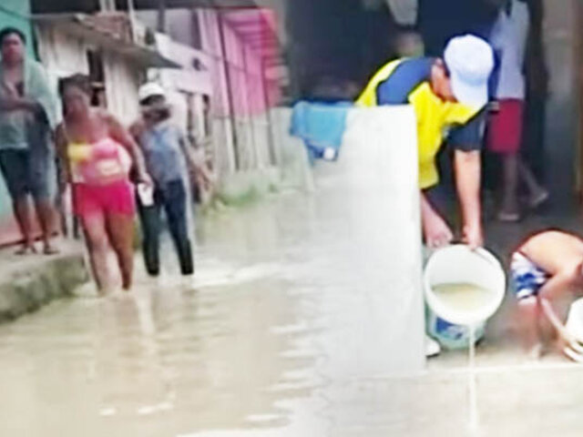 A falta de una motobomba, los vecinos tuvieron que usar baldes y tinas para retirar el agua de sus casas.