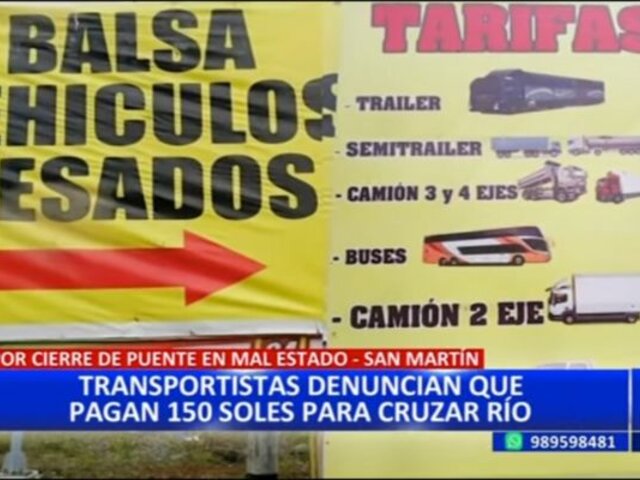 Por cierre de puente: Transportistas denuncian que pagan 150 soles para cruzar río en San Martín