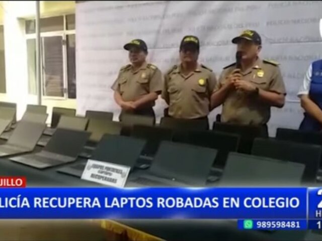 Agentes de la Policía Nacional del Perú lograron recuperar decenas de laptops que fueron robadas por 4 delincuentes, quienes sustrajeron los artefactos electrónicos de un colegio del distrito de Moche, en Trujillo.