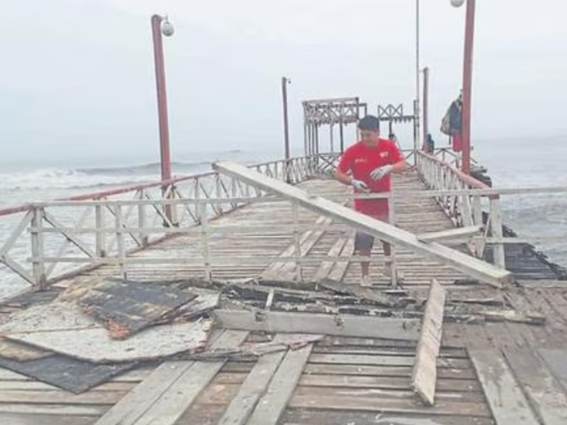 Los oleajes anómalos registrados durante la madrugada de este sábado provocaron daños en la infraestructura del muelle artesanal de Huanchaco, en Trujillo, cuyo techo de pérgola se vino abajo por la fuerza de la naturaleza.