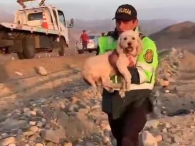 Agentes de la Policía Nacional del Perú y bomberos llegaron hacia el lugar del accidente para poder realizar las labores de rescate. Lugar donde se registraron conmovedoras imágenes y se aprecia el momento en que un efectivo policial rescata a la mascota de la pareja y logran auxiliar a la mujer.