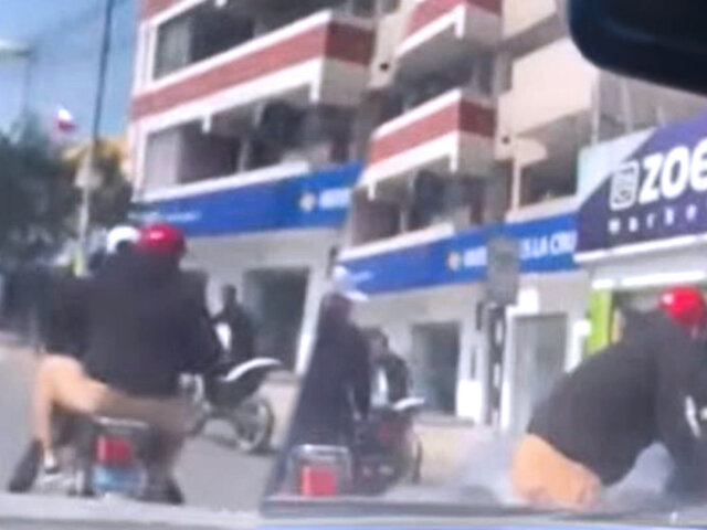 Un conductor grabó el momento cuando cuatro delincuentes asaltaron a un hombre que había retirado 16 mil soles del banco. El hecho ocurrió a plena luz del día en la transitada avenida España, a pocos metros del centro histórico de Trujillo.