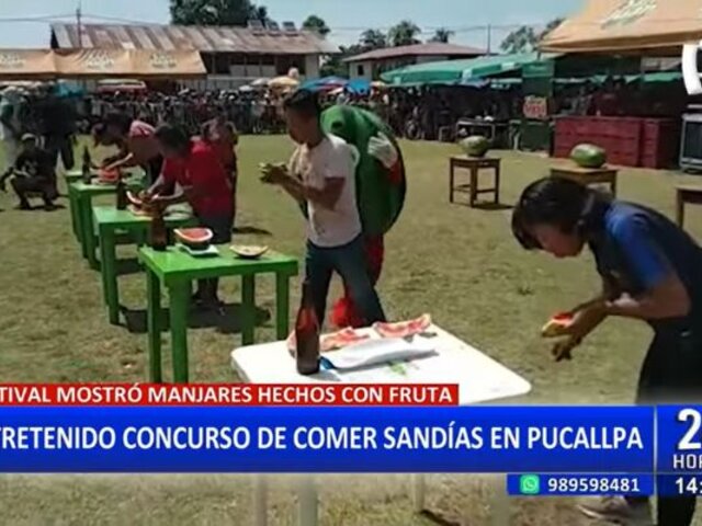 En el marco del décimo primer Festival de la Sandía en la ciudad de Pucallpa, se llevó a cabo el "Come Sandías 2023", un peculiar concurso que consistía en comer este apetitoso fruto en el menor tiempo posible.