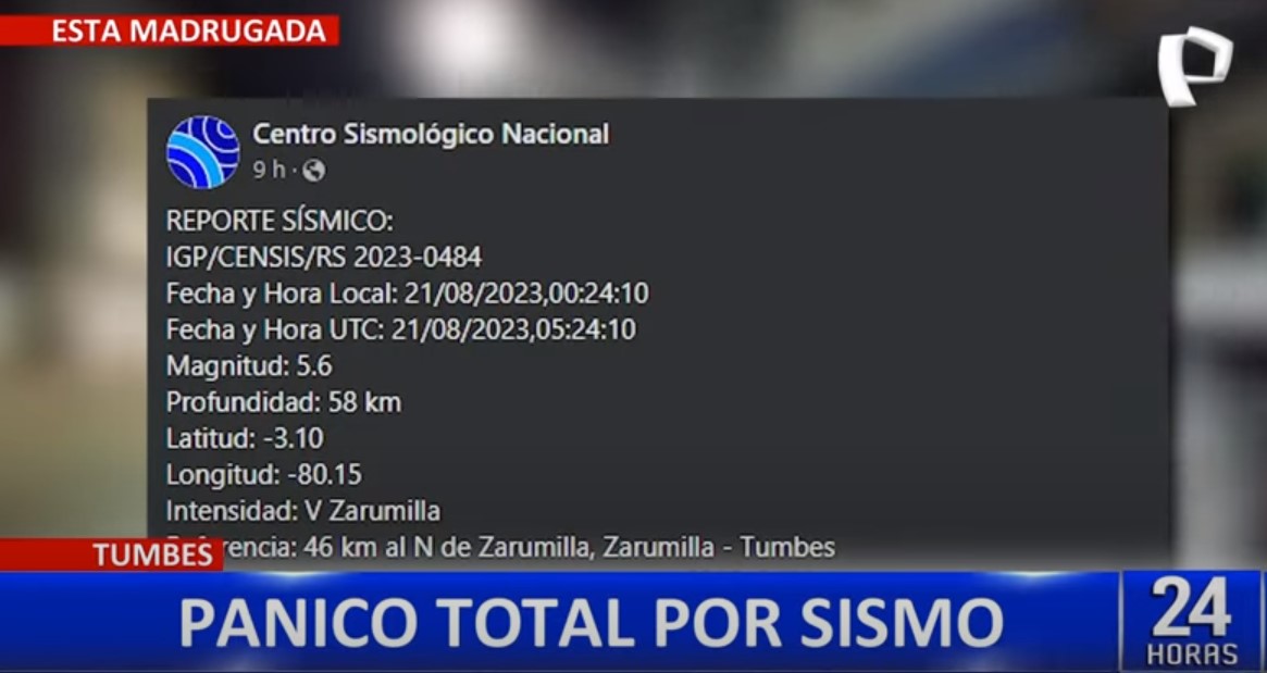 Un sismo de magnitud 5.6 registrado las primeras horas de hoy lunes, 21 de agosto, causó pánico en pobladores de la región Tumbes. Según el Instituto Geofísico de Perú (IGP) tuvo como epicentro en la ciudad de Zarumilla.