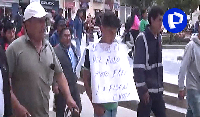 El hombre fue llevado a las calles en medio de la población, llevando un cartel que indicaba: “yo soy el autor del robó de la moto frente de la Fiscalía de Chota”. Luego de aplicarle el castigo ronderil, fue entregado a la policía para que inicie las investigaciones por ley.