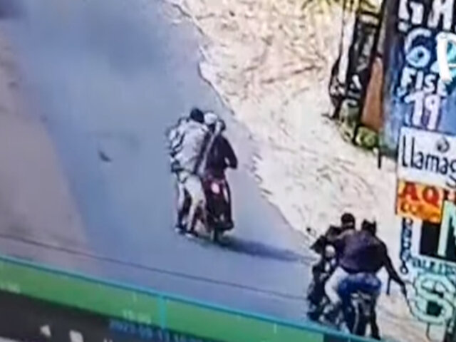 Las cámaras de seguridad de Iquitos captaron el momento exacto en el que dos motocicletas con ladrones a bordo interceptan a un camión que se encontraba descargando mercadería en un local y apoderase con S/1500.