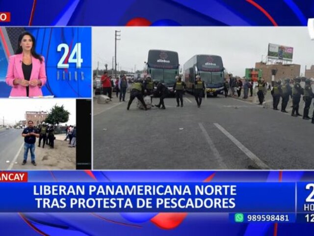 Agentes de la Policía Nacional del Perú (PNP) llegaron hasta la vía de la Panamericana Norte cerca al óvalo de Chancay y lograron restablecer el tránsito en dicha zona, la cual fue bloqueada por pescadores artesanales que vienen acatando un paro indefinido.