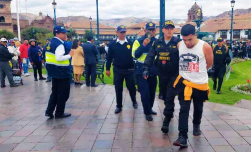 Un barrista del club Universitario de Deportes fue intervenido por las autoridades tras provocar altercados en la Plaza Mayor. La intervención fue realizada por la policía local con el apoyo del serenazgo, quienes lograron controlar la situación y detener al individuo para su posterior traslado a la comisaría.
