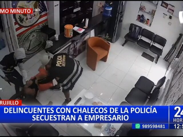 Cámaras de seguridad registraron el impactante momento en que un empresario es secuestrado por un grupo de sujetos vestidos como policías a cuadras del centro de Trujillo, en la región La Libertad.