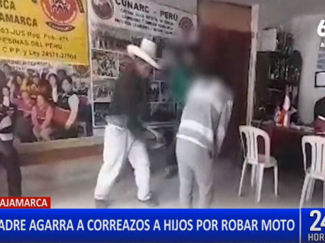 Cajamarca: padre castiga a correazos a sus hijos por robar una moto